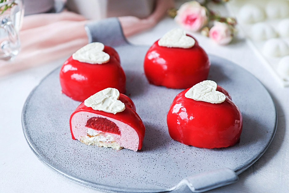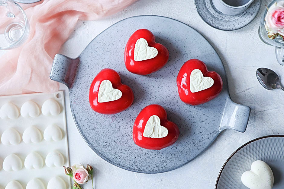 Все компоненты готовы к сборке пирожных. Я собрала их в форме сердце. Скоро 14 февраля, эти пирожные будут подходящим десертом на романтическом ужине.