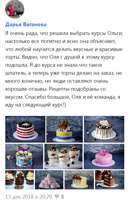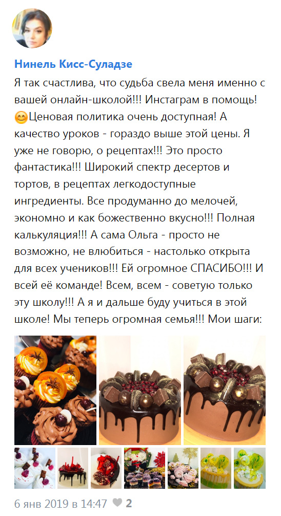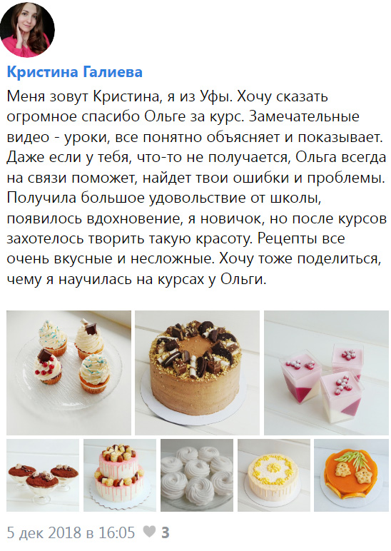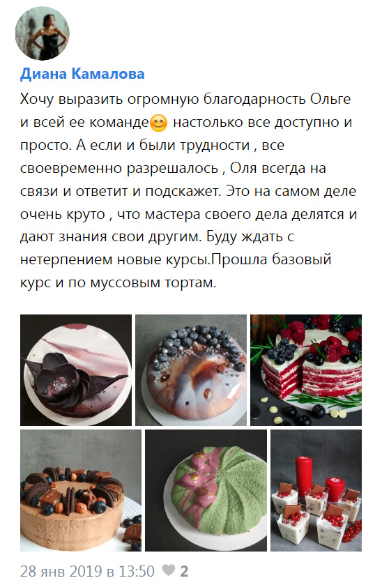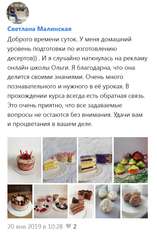 Вместе с Вами обучение проходят люди увлеченные кондитерским делом. В чате ученики делятся успехами, дают советы и просто общаются.